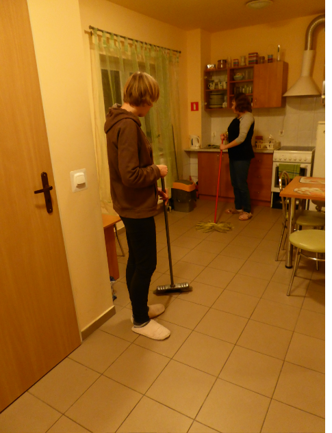 trening umiejętności praktycznych - nauka dbałości o bieliznę osobistą, ubranie wierzchnie, buty; jak umyć okna, upiąć dekoracyjnie firany, jak zrobić generalne porządki w domu, jak ekonomicznie zrobić pranie, odczytać poprawnie symbole na odzieży itd.; mieszkańcy dowiedzą się również, jak udzielić pierwszej pomocy,