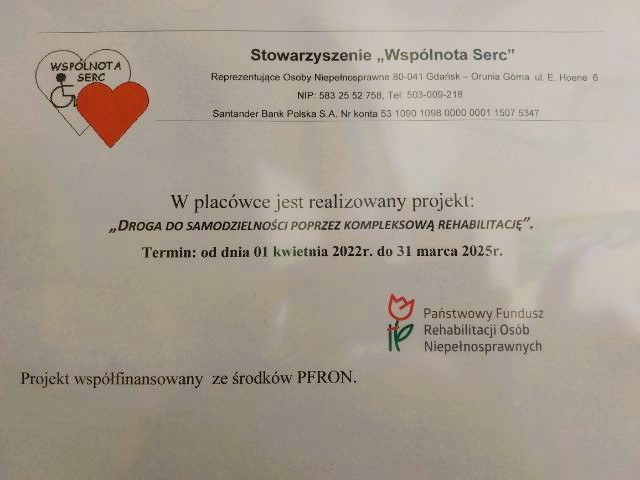 W projekcie bierze udział 33 beneficjentów. Są to osoby różniące się wiekiem, stopniem oraz rodzajem niepełnosprawności. Indywidualne zajęcia prowadzone są w sposób ciągły 5 dni w tygodniu, przez 12 miesięcy przez pracowników Stowarzyszenia (3 rehabilitantów, 2 logopedów, 2 pedagogów, psychologa). Zajęcia odbywają się w pomieszczeniach Stowarzyszenia mieszczących się w Szkole Podstawowej nr 19 w Gdańsku.